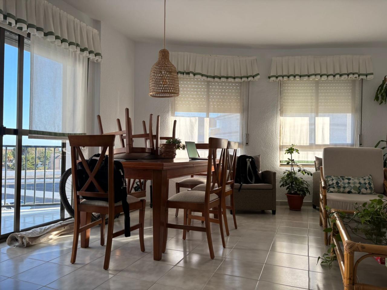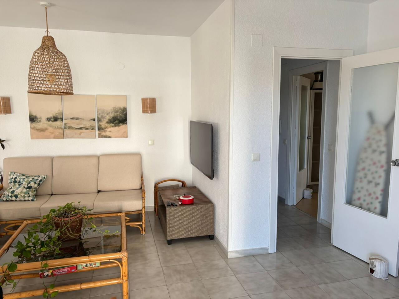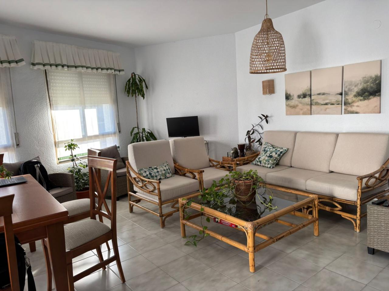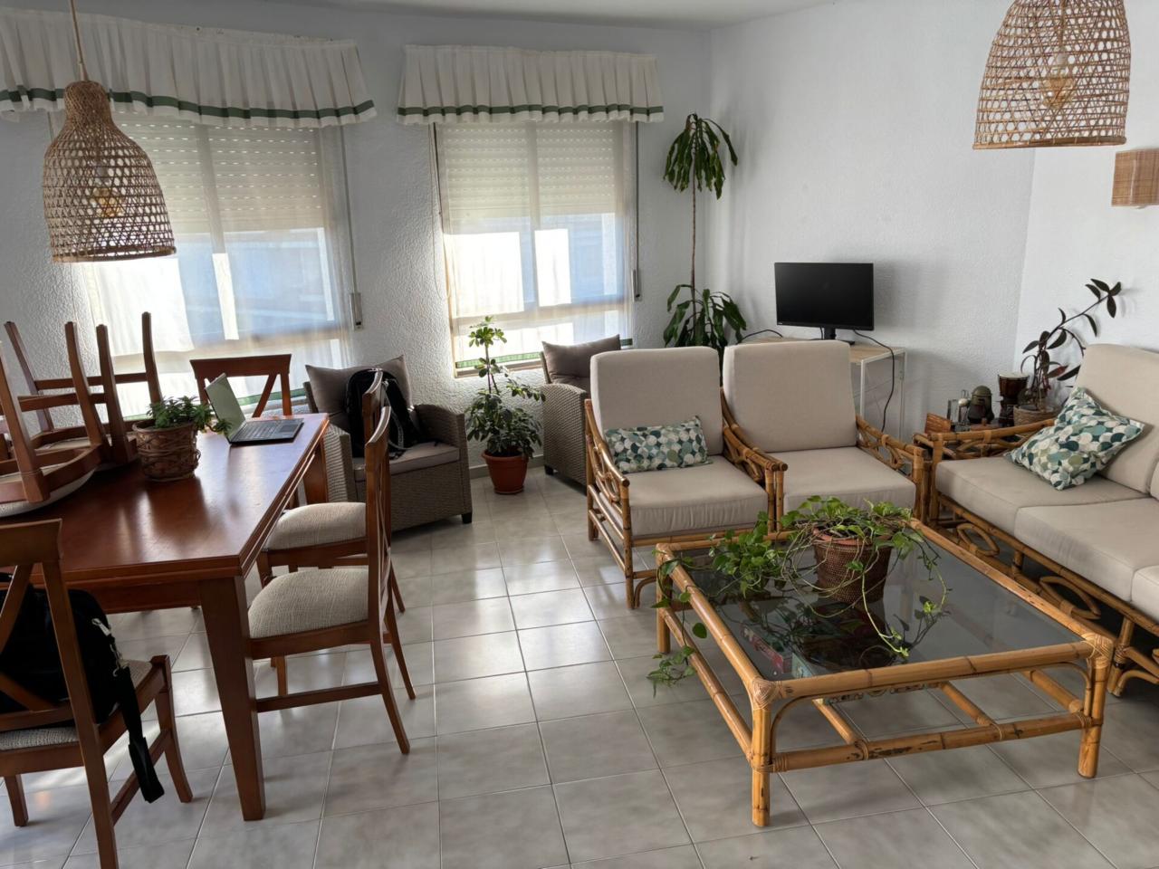 El Piso Dispone de amplio salón exterior con terraza, y muy buena orientación sur. La Cocina es nueva y equipada(Vitrocerámica, horno, menaje, lavavajillas y termo de bombona de butano)