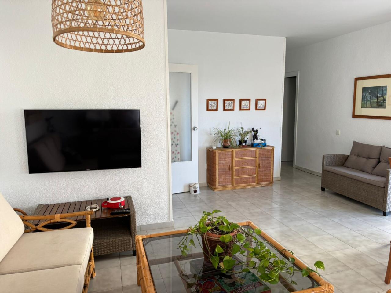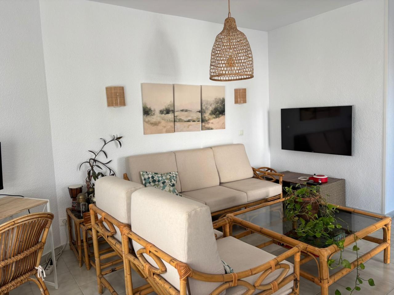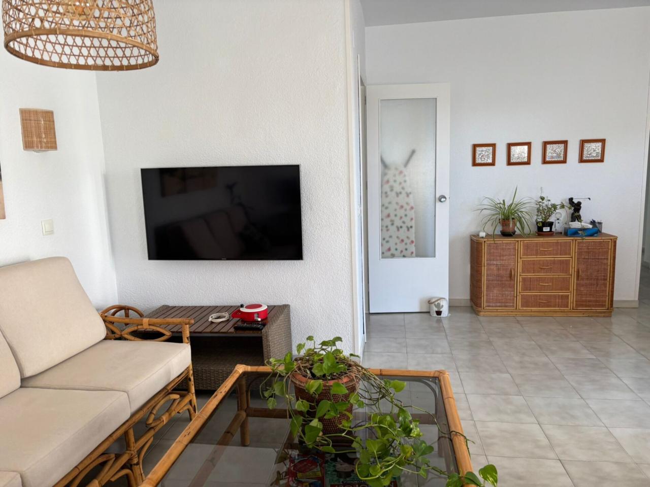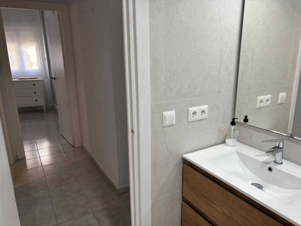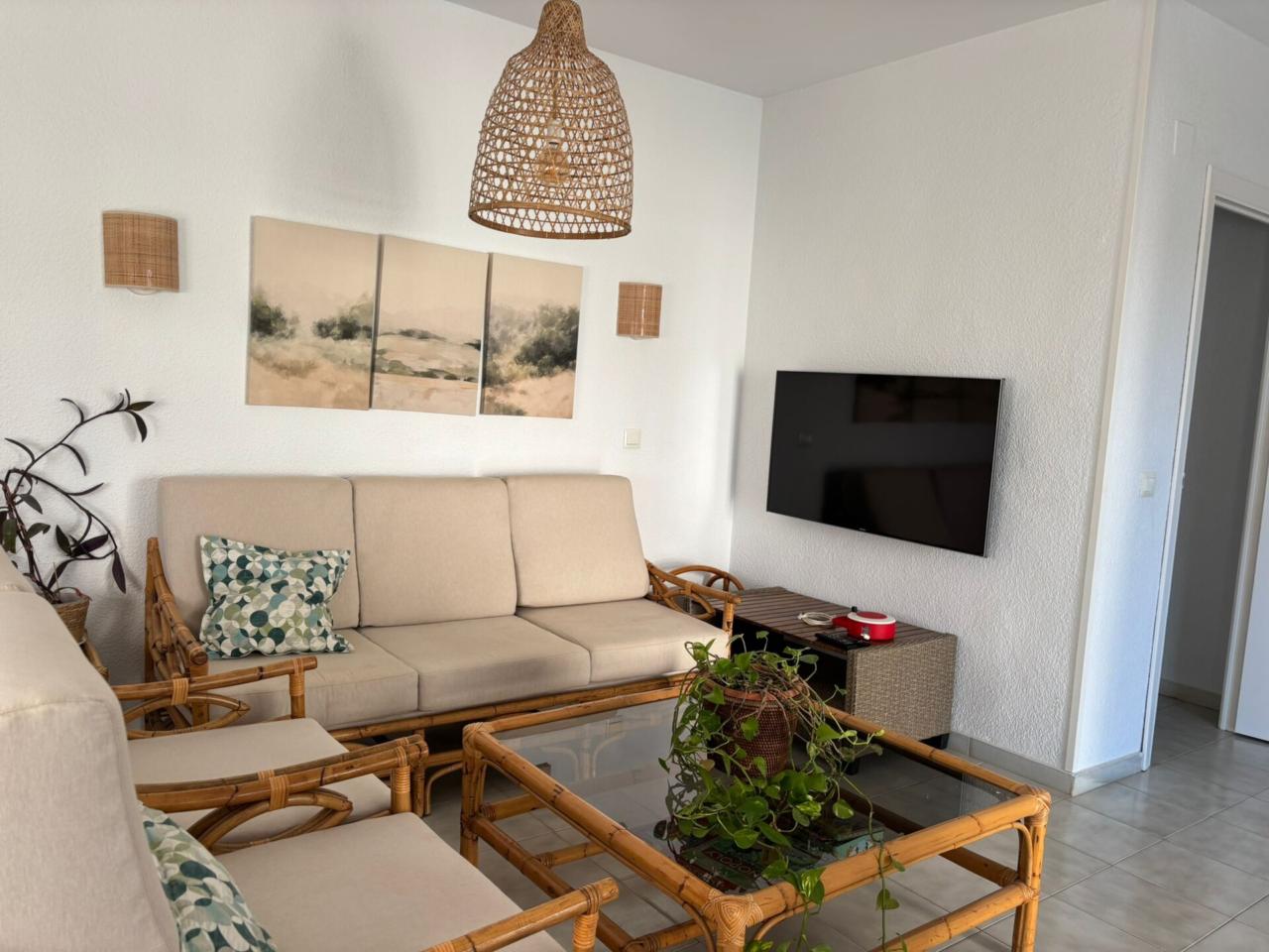 El Piso Dispone de amplio salón exterior con terraza, y muy buena orientación sur. La Cocina es nueva y equipada(Vitrocerámica, horno, menaje, lavavajillas y termo de bombona de butano)