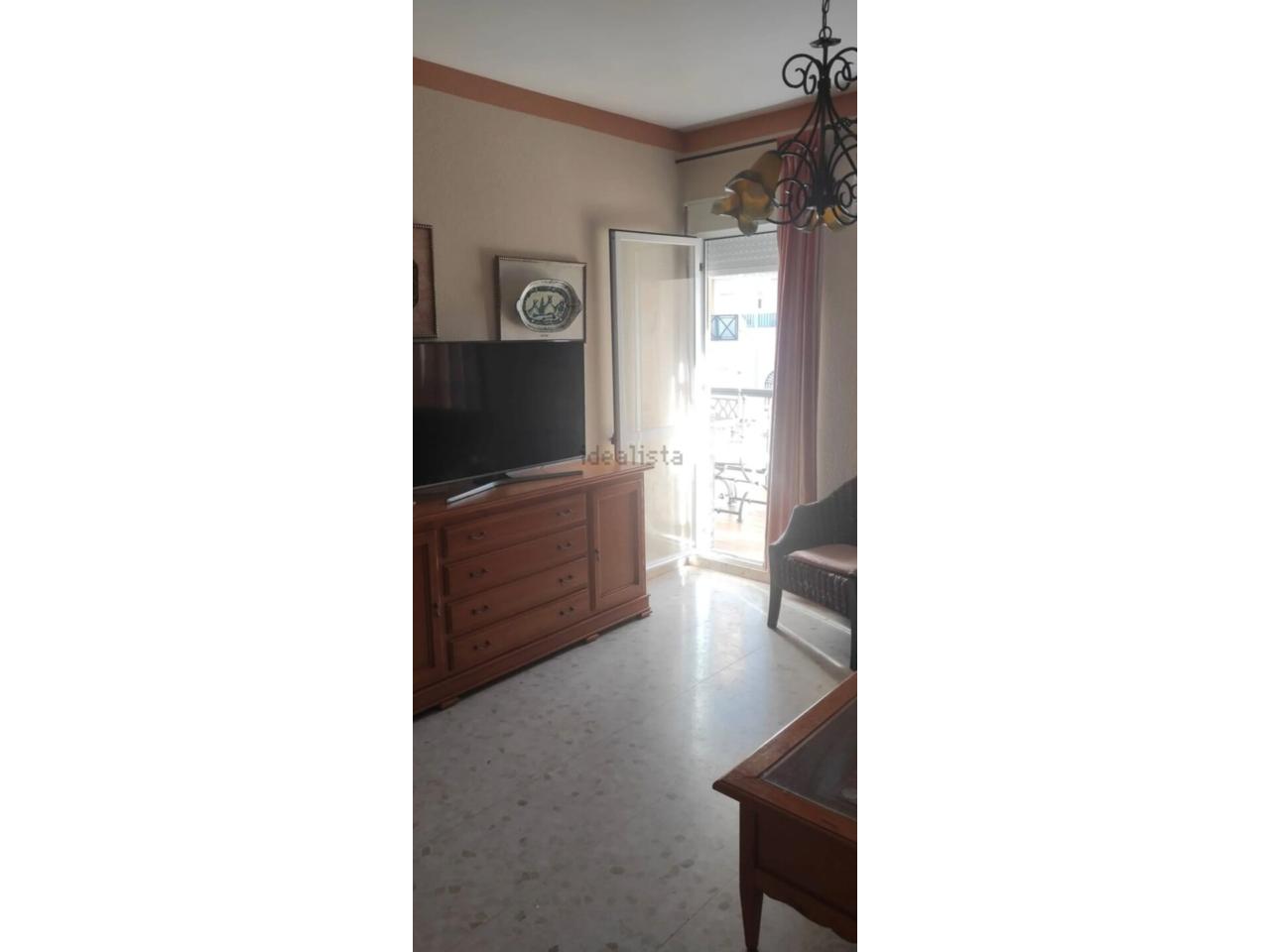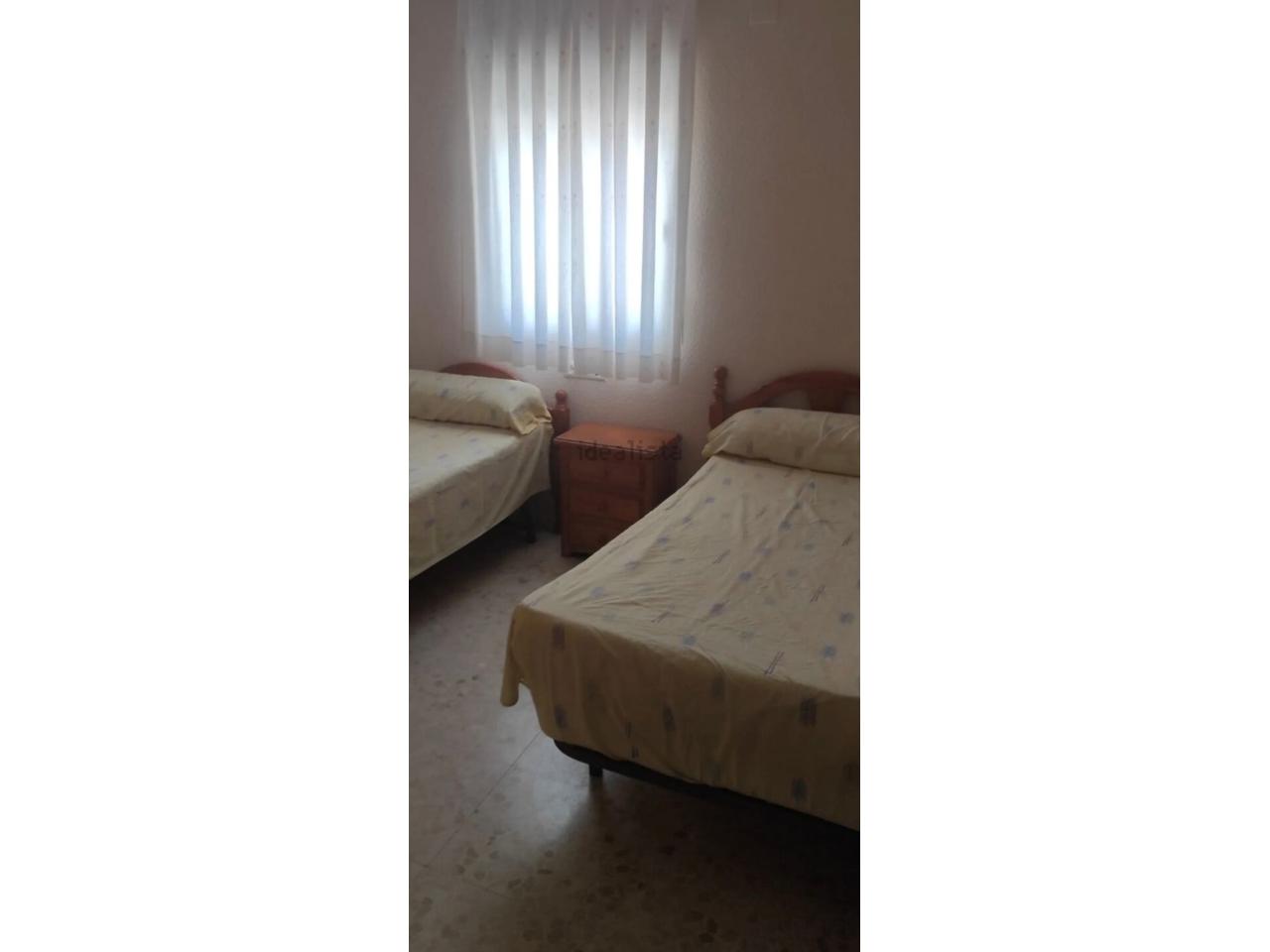 Piso con amplio balcón en una primera planta, distribuido en 2 dormitorios ( habitación principal con cama de matrimonio y segunda habitación con 2 camas individuales) y dos cuartos de baños (uno con bañera y el otro con plato de ducha).