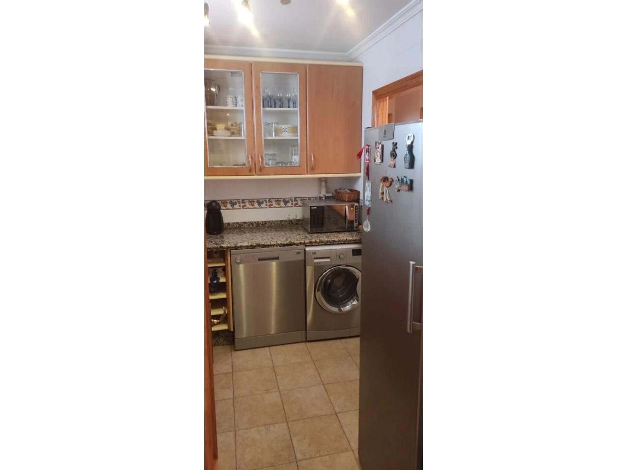 Cocina americana con electrodomésticos (microondas, horno, lavavajillas, etc.. . ) y termo de bombona de butano.